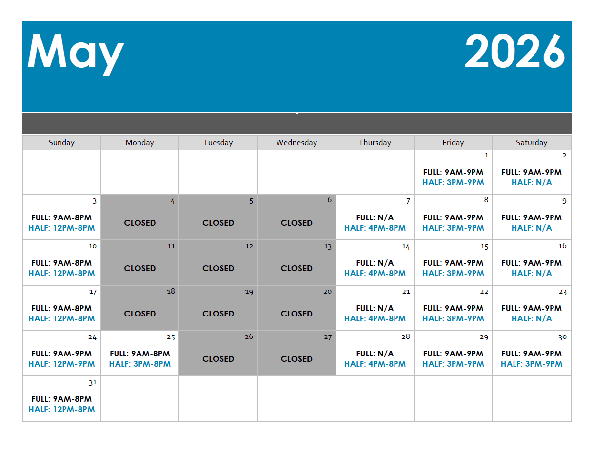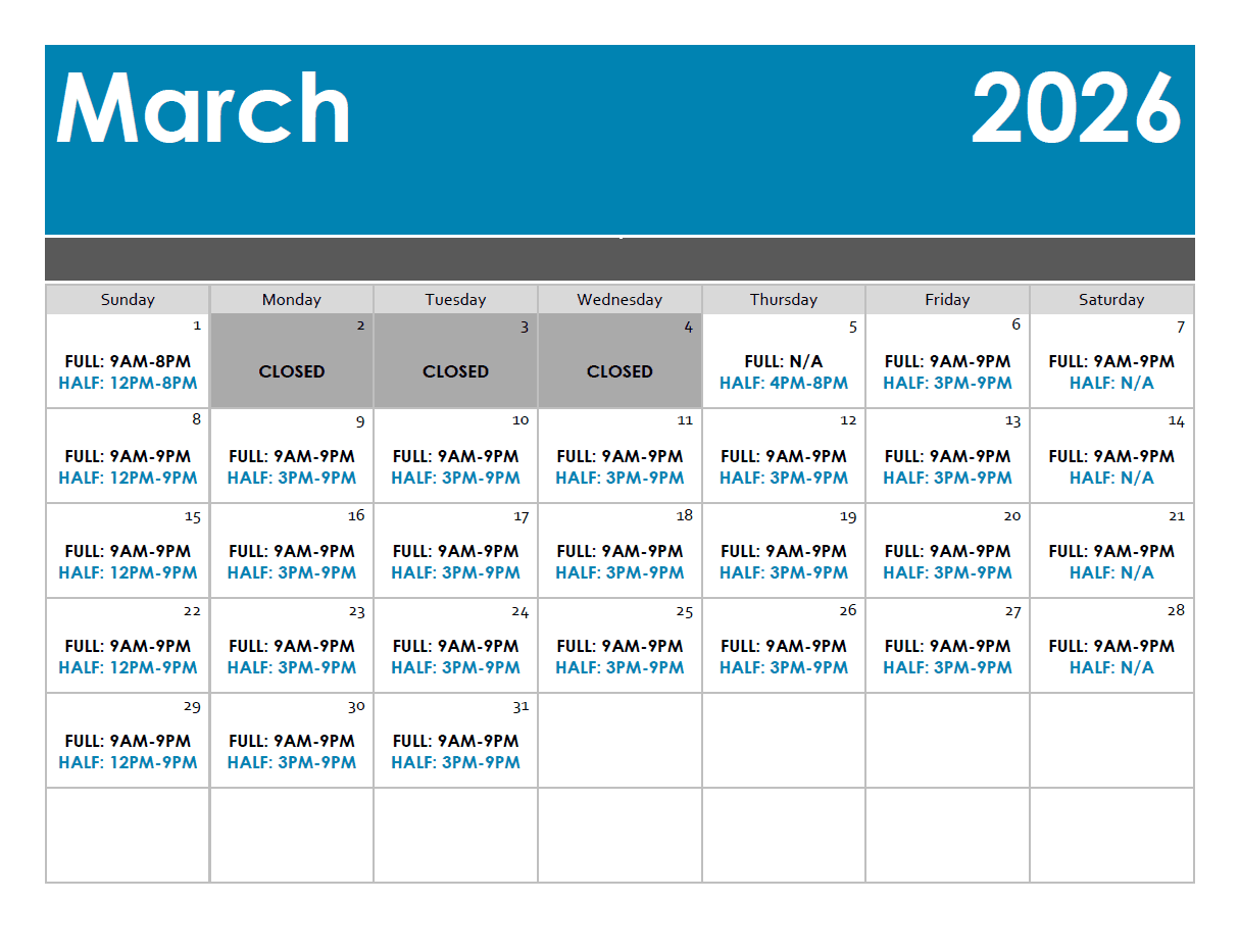 *Day pass pricing is subject to change during special event periods (including Spring Break, Winter Break, Holidays, etc.) Please call to verify pricing and availabilty for your visit.
